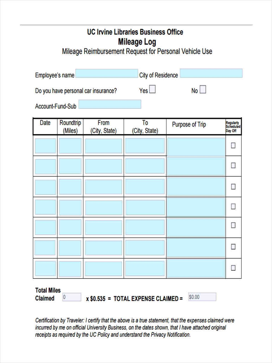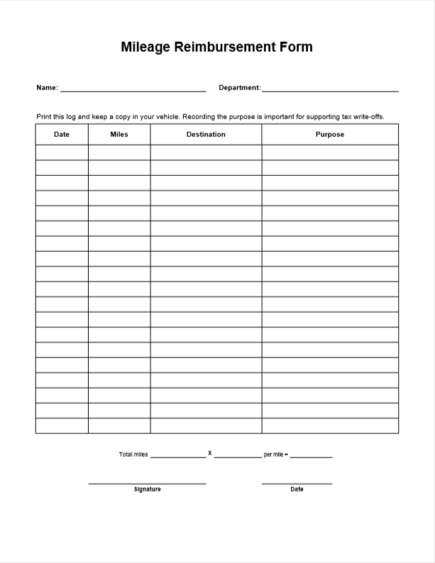 2025 – Mileage Reimbursement Form 2025 Printable