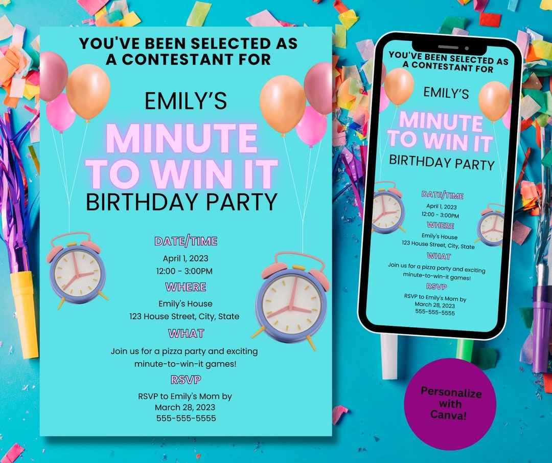 These invitations are not only convenient but also a great way to set the mood for your Minute To Win It game night. Your guests will appreciate the effort you put into making the event special, and they’ll be counting down the minutes until they can join in on the fun.