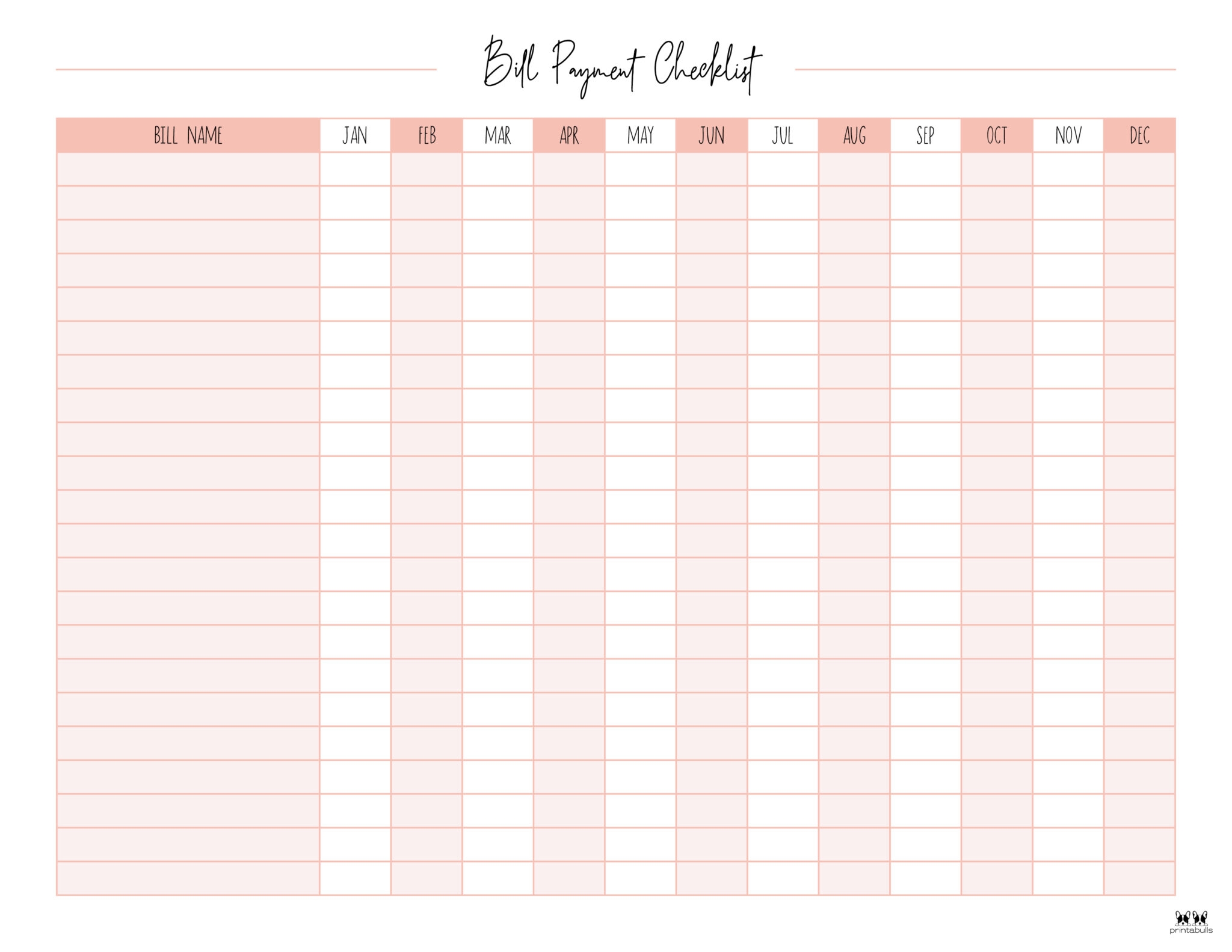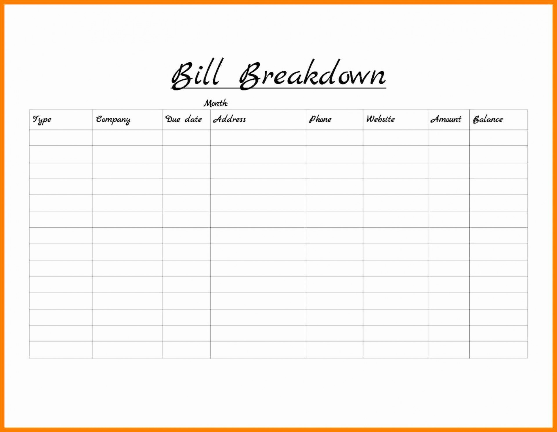 Monthly Bill Organizer Template Excel Free Printable