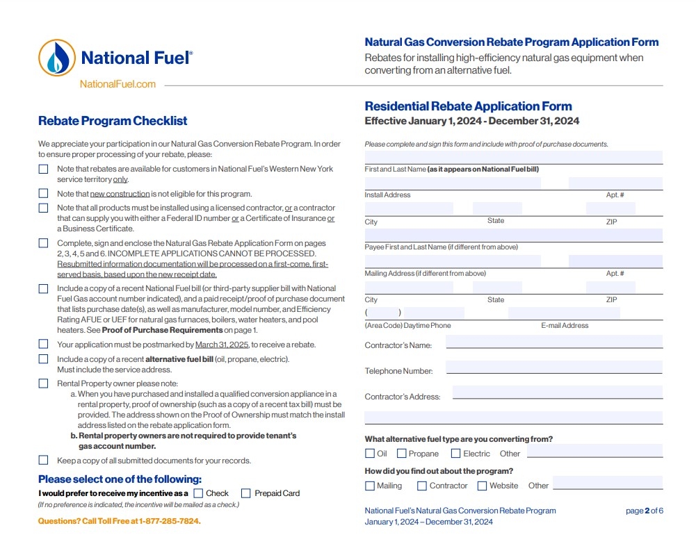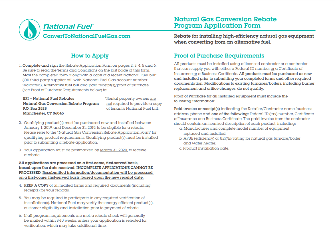 National Fuel Natural Gas Conversion Rebate Program Application Form