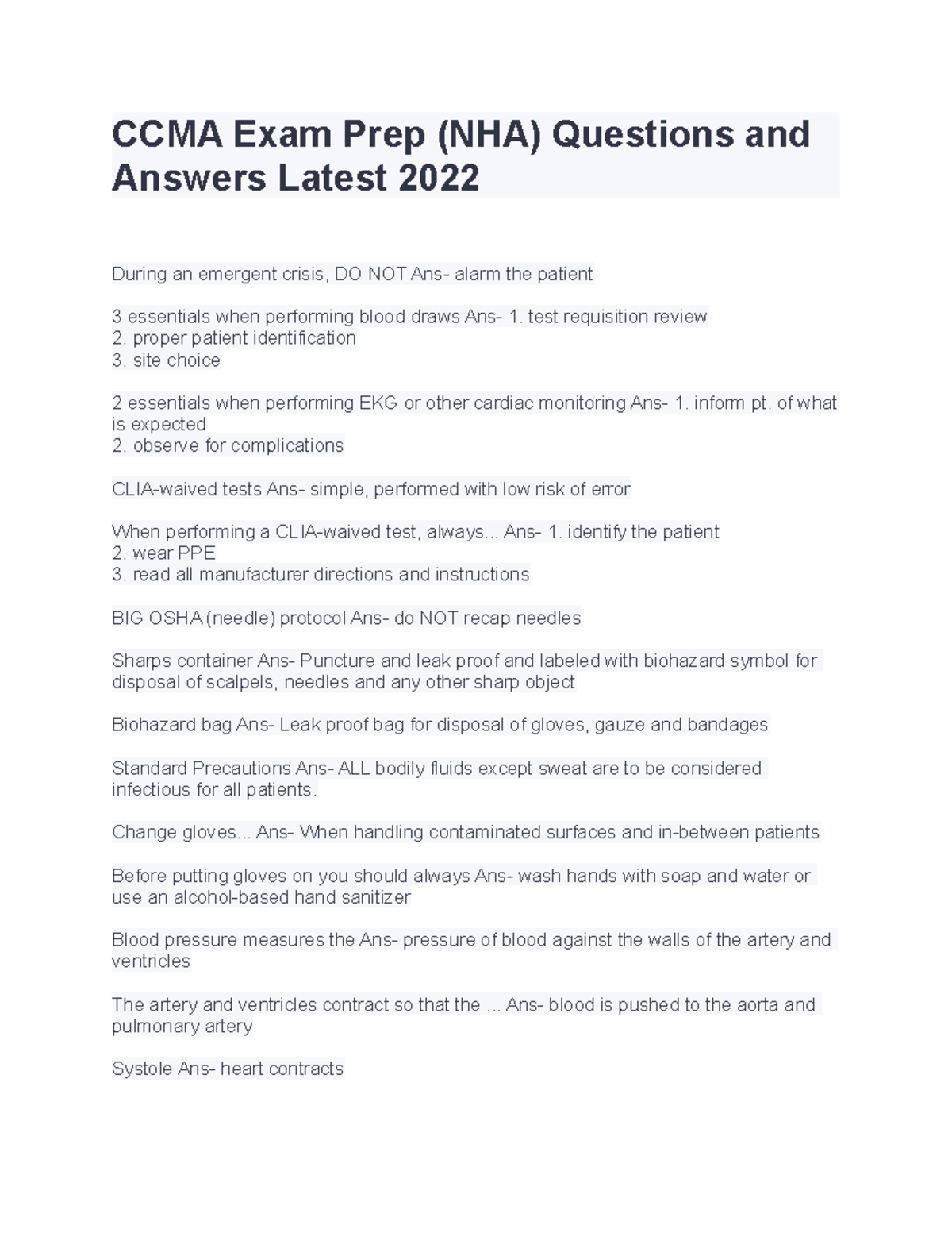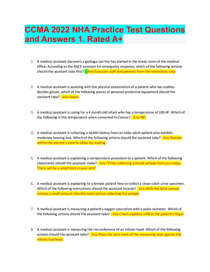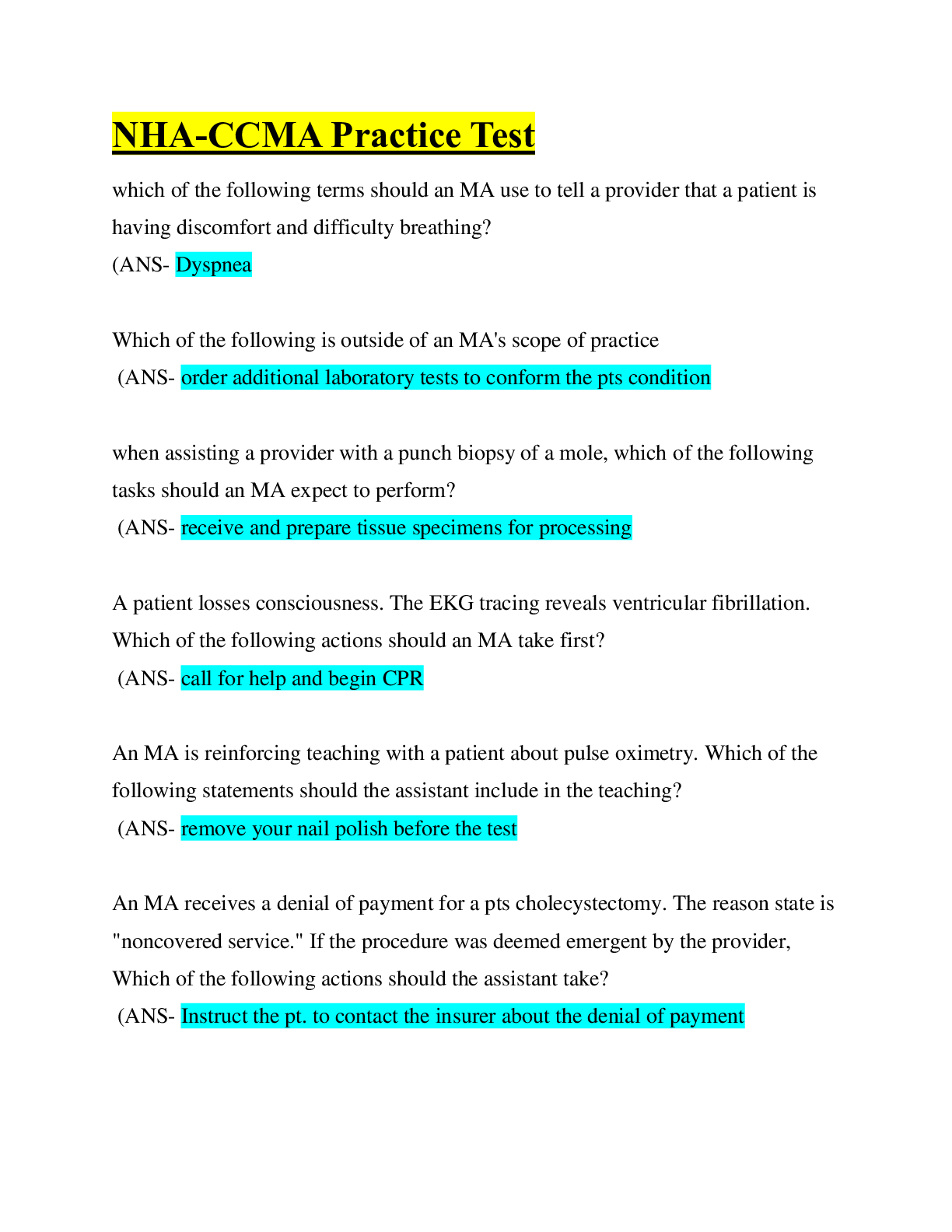 NHA CCMA Practice Test Questions Answers Latest 2022 2023 Browsegrades