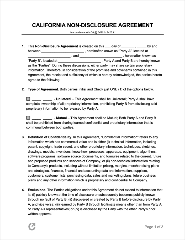 California Non Disclosure Agreement NDA PDF Word