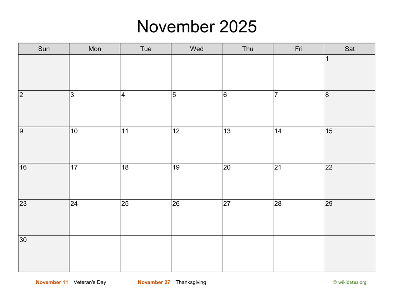2025 – November Month Calendar 2025 Printable