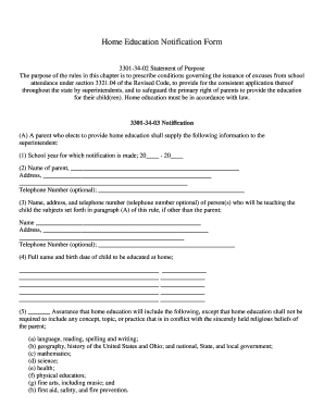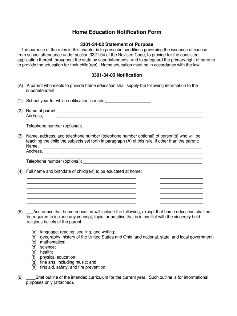 Ohio Homeschool Notification Form Fill Out Sign Online DocHub