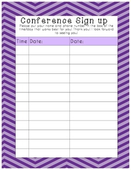 Parent Teacher Conference Sign Up Sheet Purple Chevron By Kindergarten