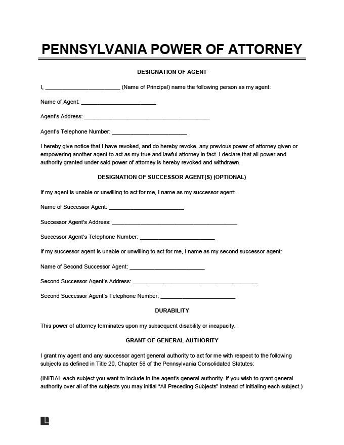 Free Pennsylvania Power Of Attorney Forms PDF Templates