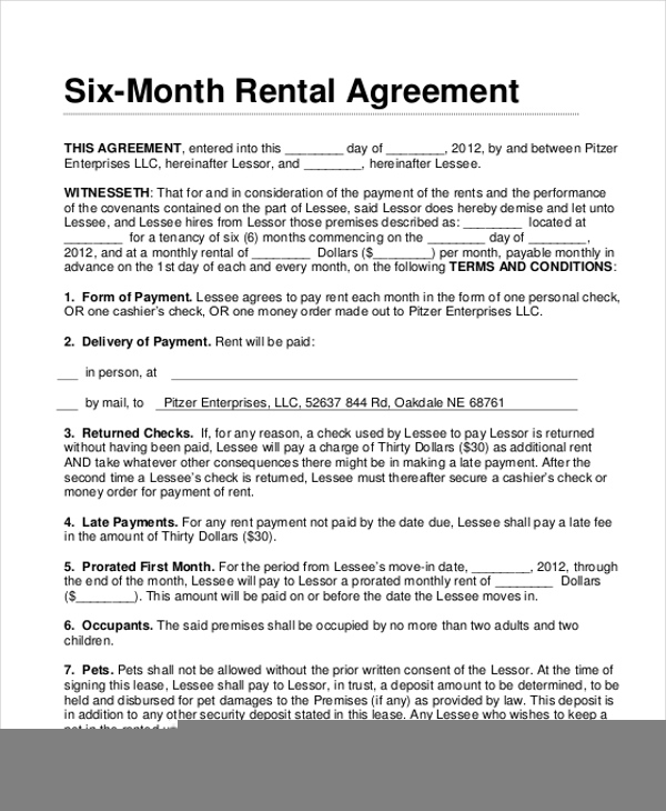 Printable 6 Month Lease Agreement Printable Lease Agreement