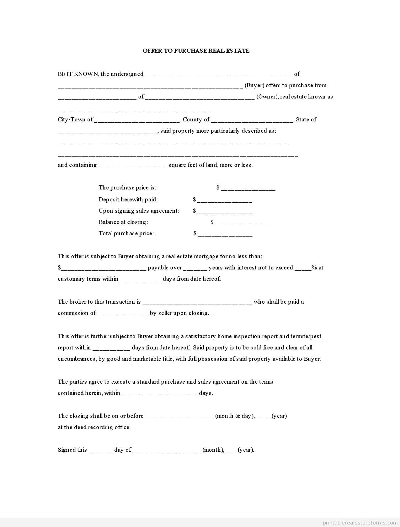 Free Printable Real Estate Purchase Agreement Form Printable Forms