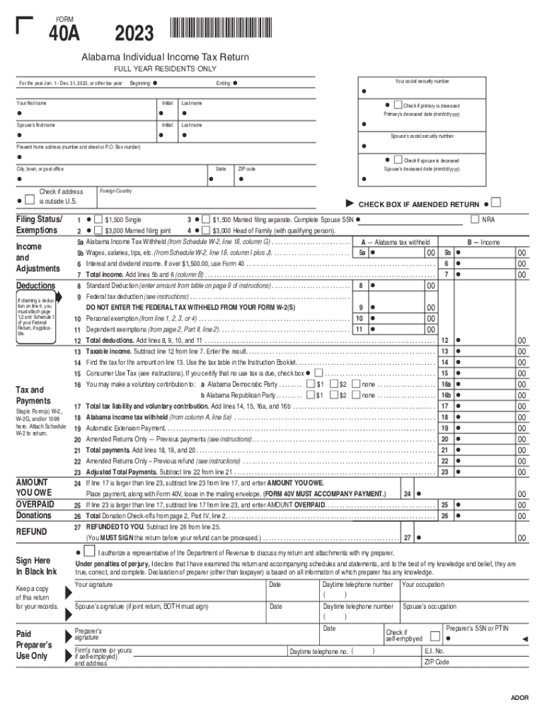 2023 2025 Form AL ADoR 40 Fill Online Printable Fillable Blank