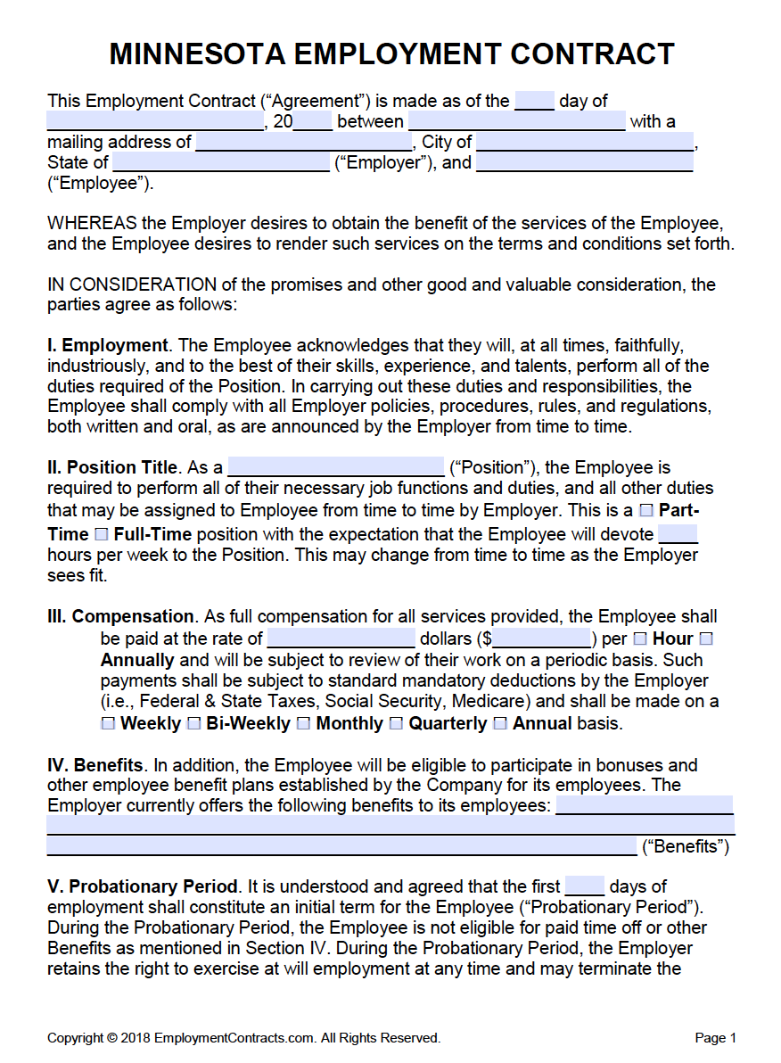 Minnesota Employment Contract Template PDF Word