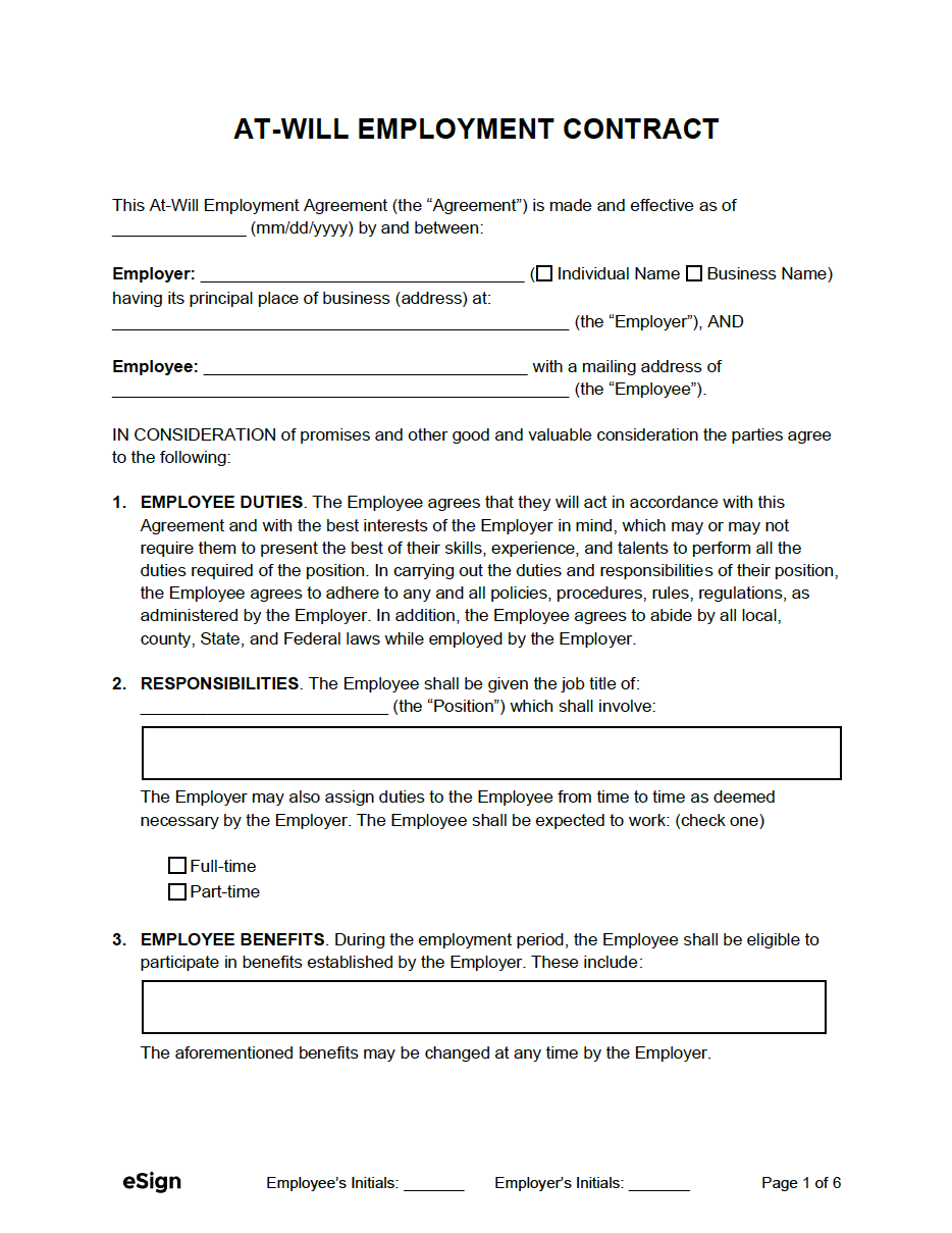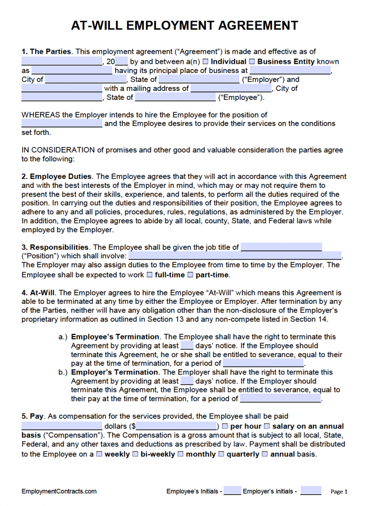 Free At Will Employment Contract Template With Example