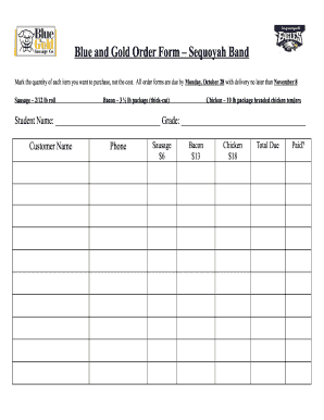 Blue And Gold Order Form Sequoyah Band Fill And Sign Printable
