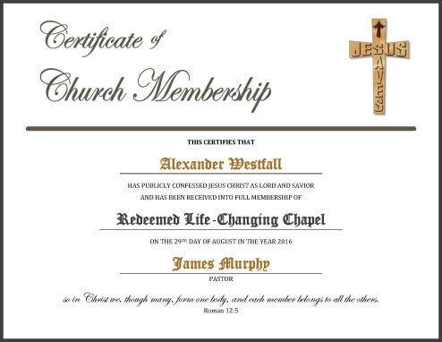 Printable Church Membership Certificates