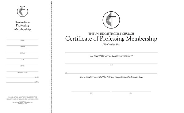United Methodist Church Membership Certificates