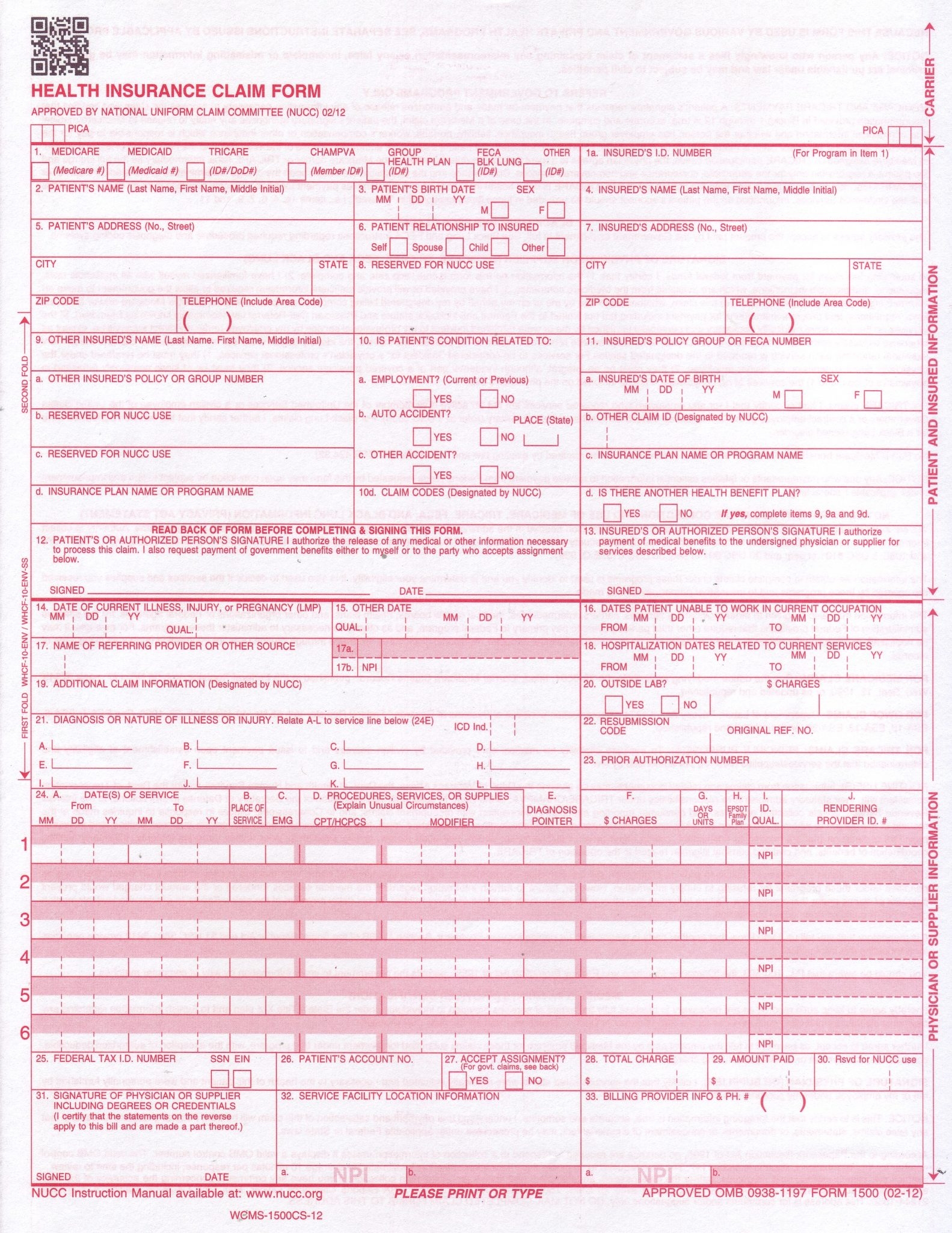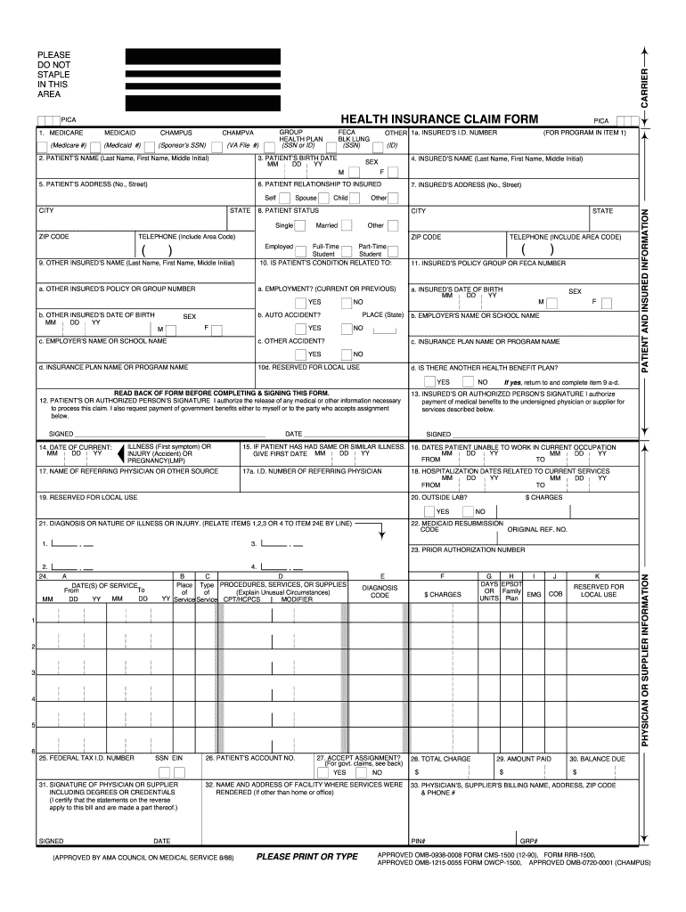 Printable Cms 1500 Form Download Printable Forms Free Online