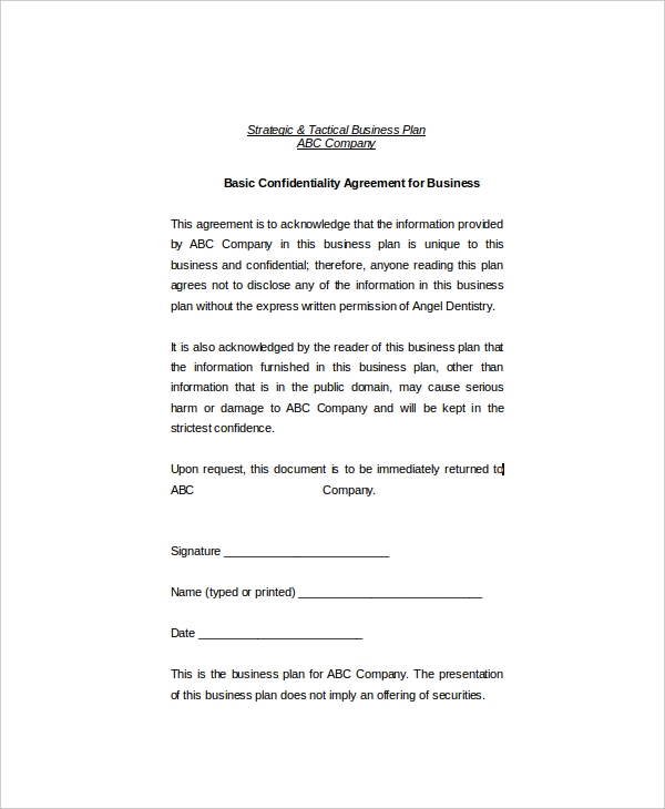 Printable Simple Confidentiality Agreement Template Word