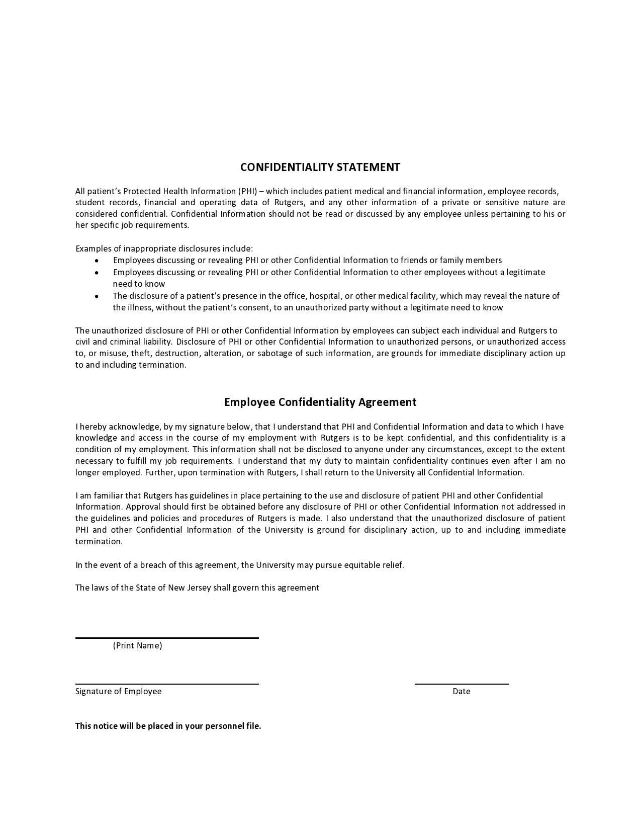 Printable Employee Confidentiality Agreement Template Vrogue co