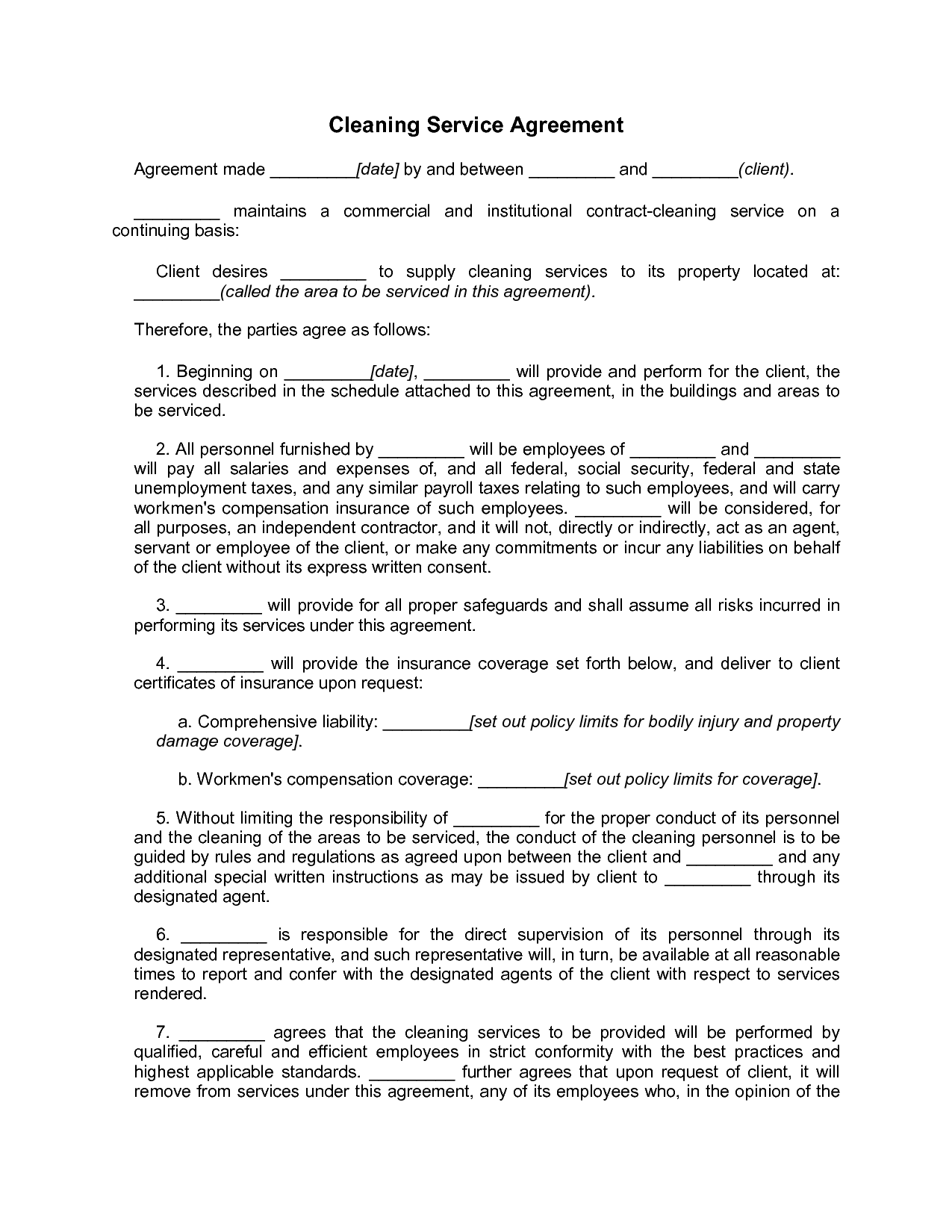 Cleaning Services Contract Agreement Free Printable Documents