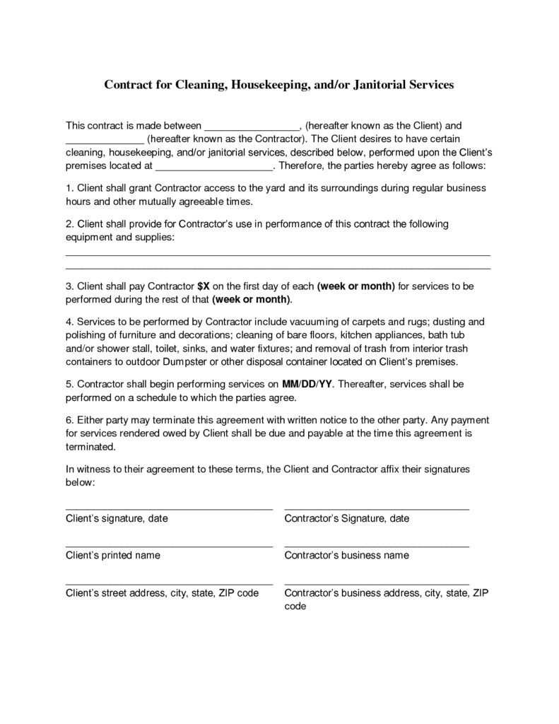 Printable Contract For Cleaning Services