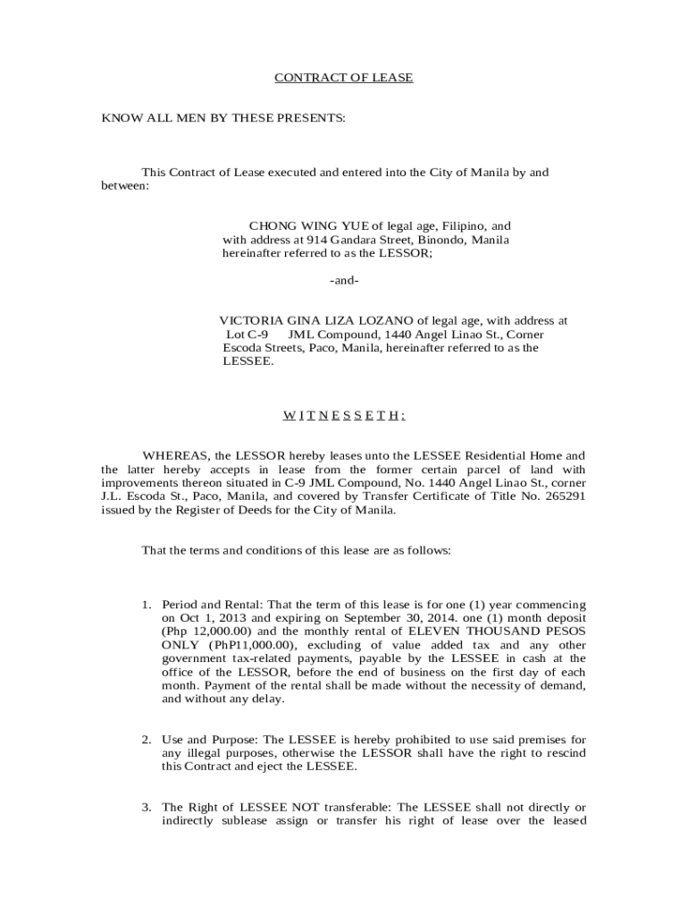 Sample Tagalog Contract Of Lease At Kenneth Bray Blog