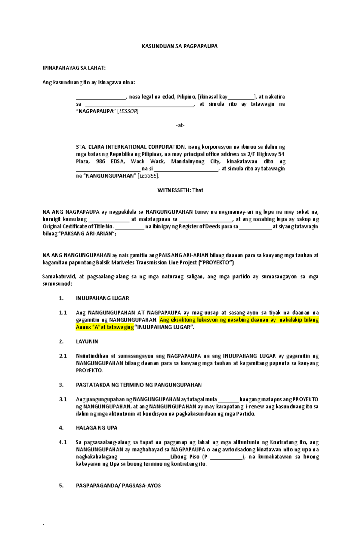 Sample Tagalog Contract Of Lease At Kenneth Bray Blog