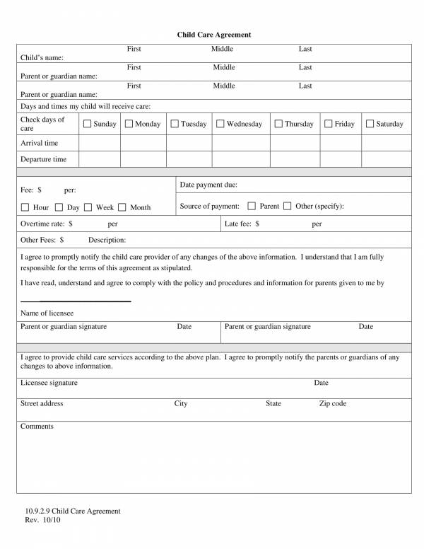 Free Printable Daycare Forms Contracts Printable Forms Free Online