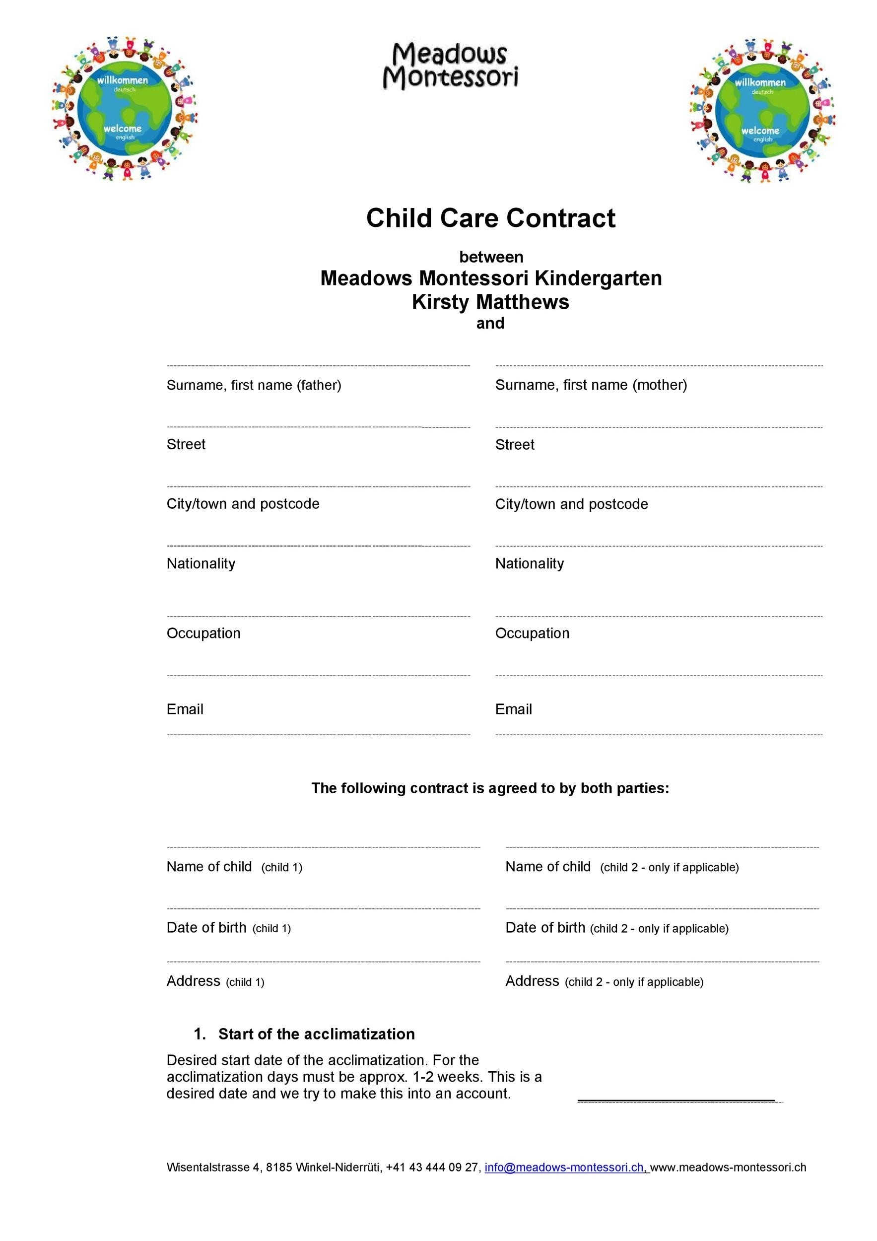 Printable Daycare Contract Template Printable World Holiday