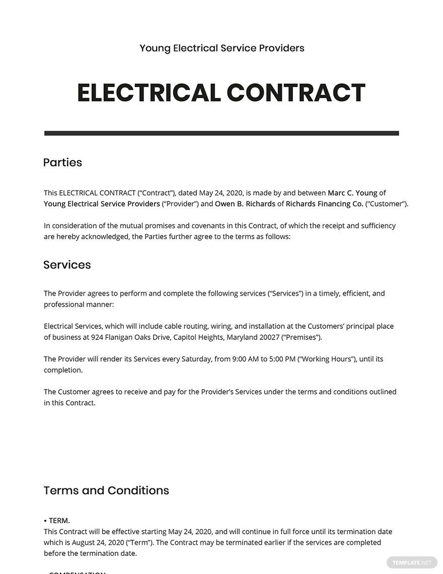 Electrical Contract Template Google Docs Word Template