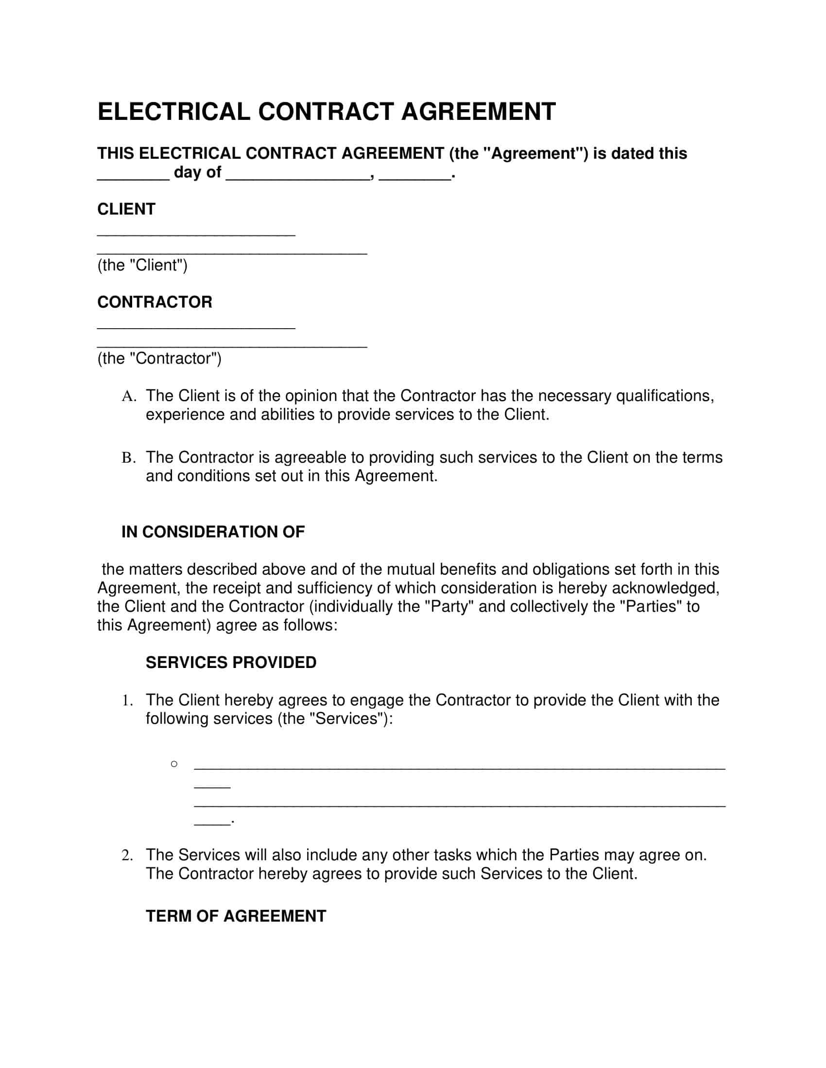 Electrical Contract Template Printable