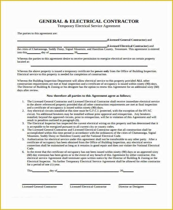 Free Printable Electrical Contract Templates PDF Word Agreement