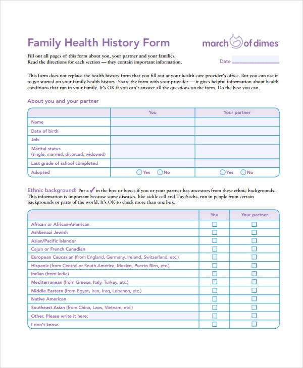 FREE 7 Sample Family Medical History Forms In MS Word PDF