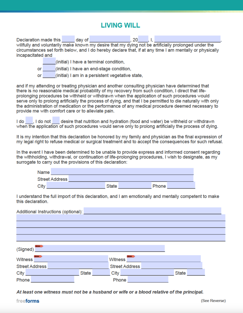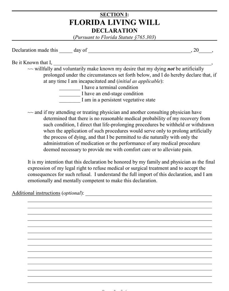 Free Florida Living Will Form Template PDF EForms