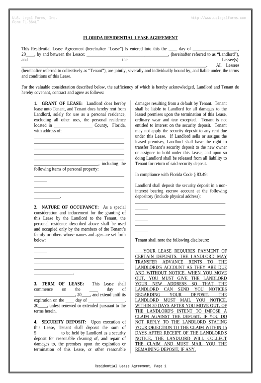 Printable Lease Agreement Florida