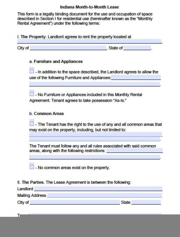 Free Indiana Month To Month Lease Agreement PDF Word Doc Printable