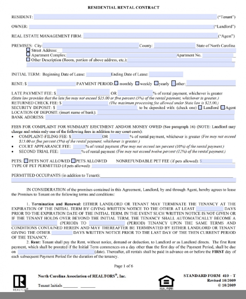 FREE Printable NC Lease Agreement Printable Lease Agreement