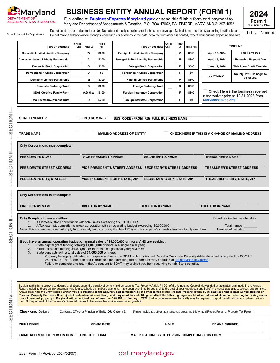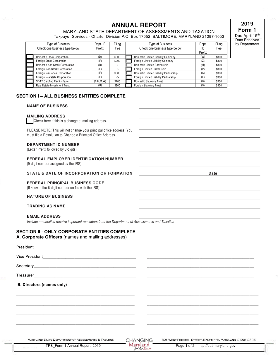 Form 1 Download Fillable PDF Or Fill Online Business Entity Annual