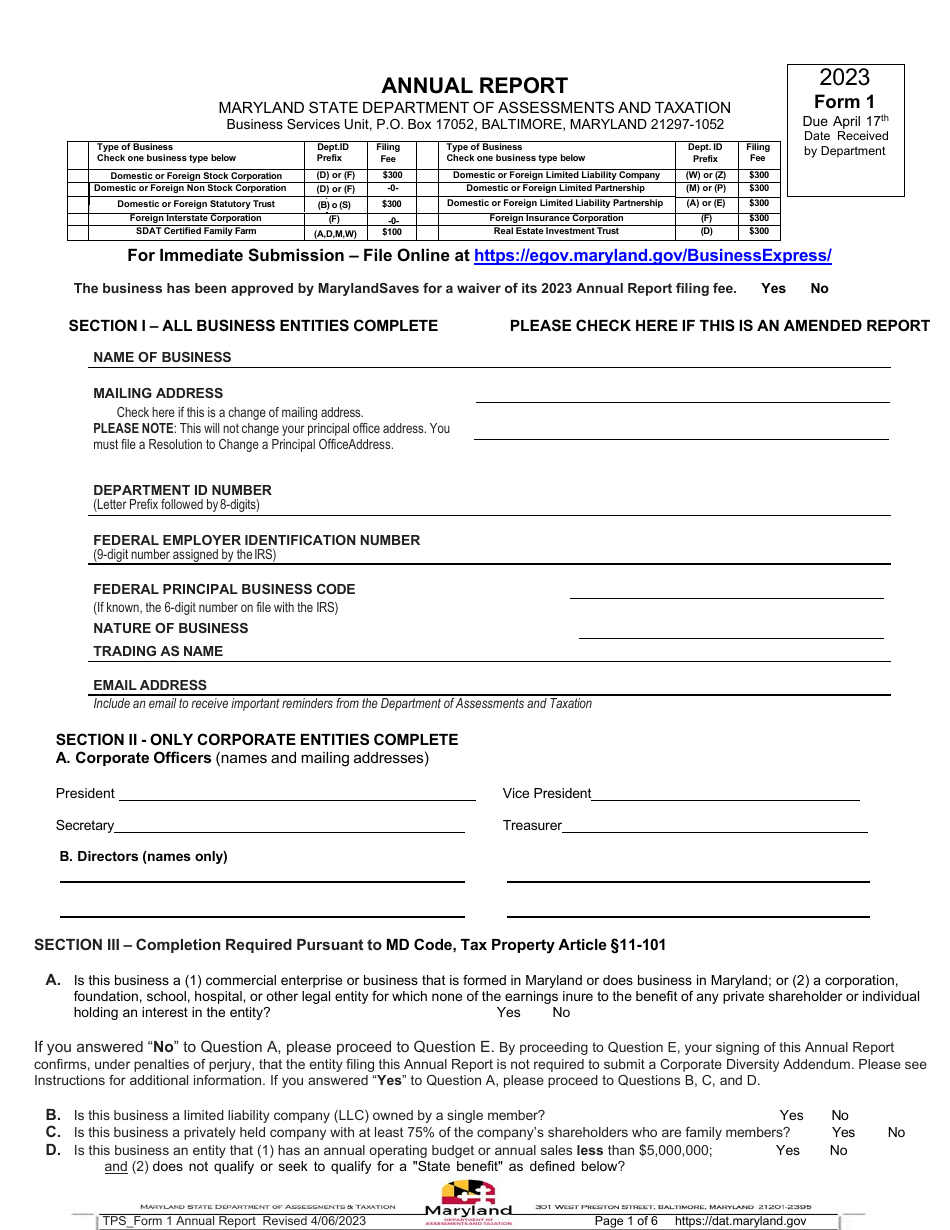 Form 1 Download Fillable PDF Or Fill Online Annual Report 2023