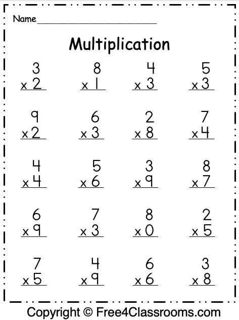 Free 1 Digit Multiplication Worksheet Free Worksheets Free4Classrooms