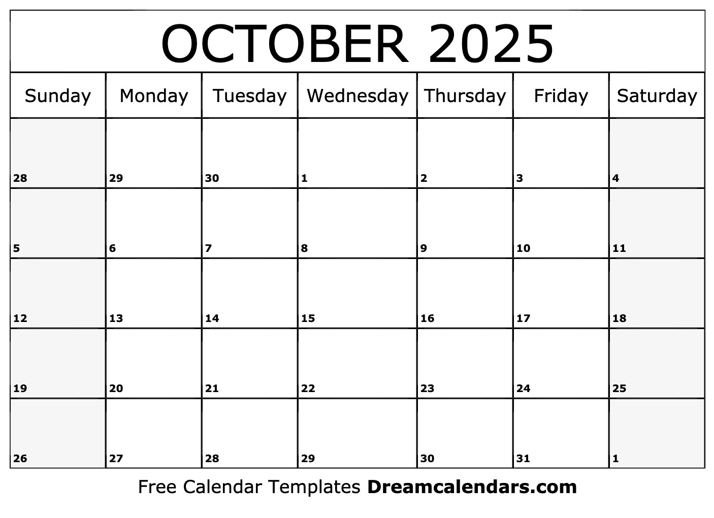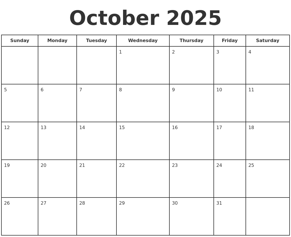 October 2025 Calendar Free Printable Calendars