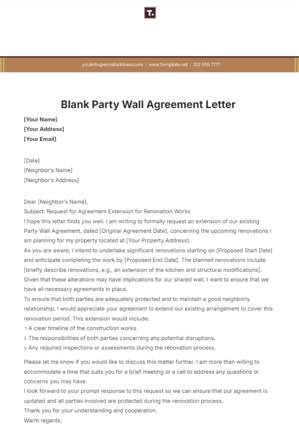 Free Blank Party Wall Agreement Letter Template To Edit Online