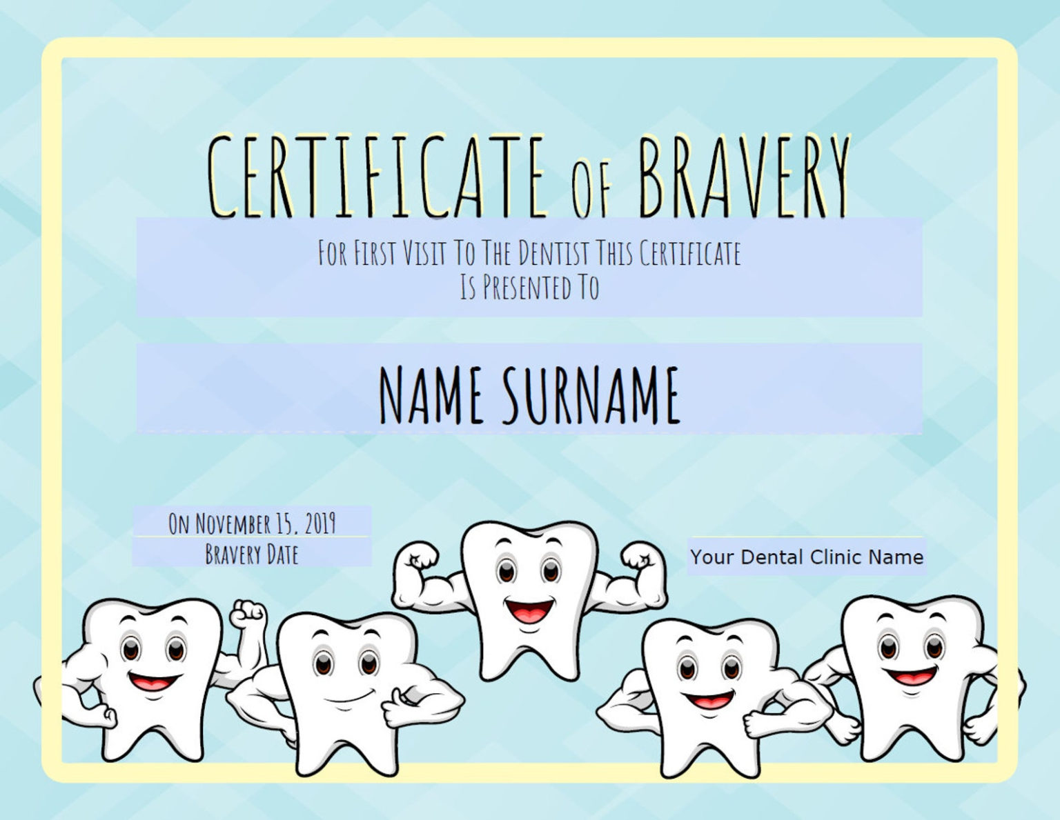 Dentist Certificate Of Bravery Editable Kids Certificate Etsy
