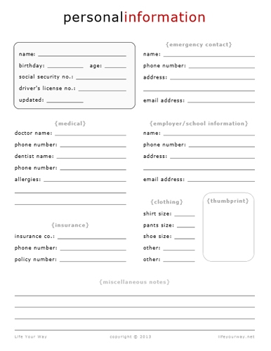 Printable Personal Information Sign Up Sheet Form