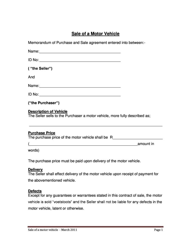 Printable Vehicle Purchase Agreement Templates Template Lab Inside