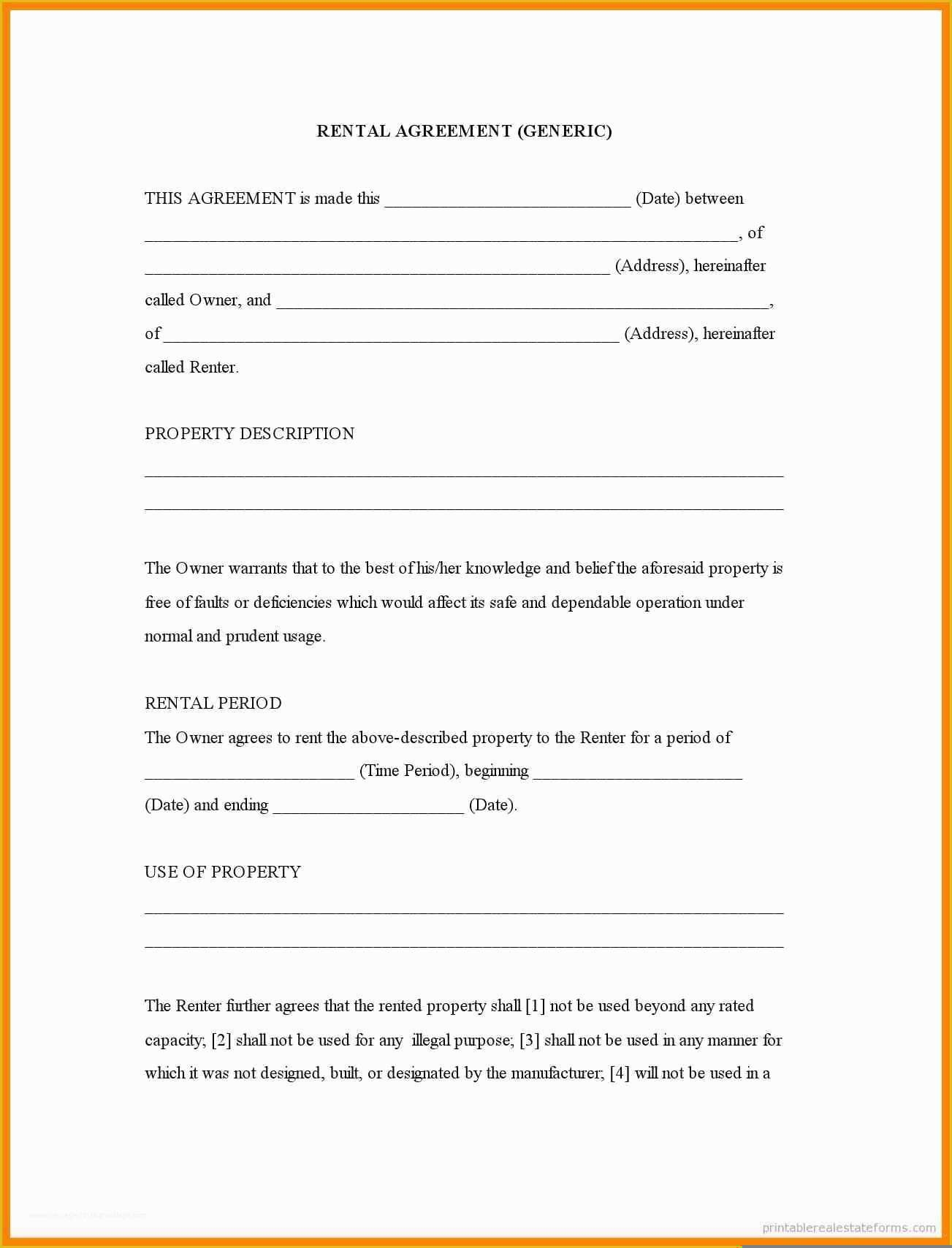 Rental Agreement Form Free Printable Printable Forms Free Online