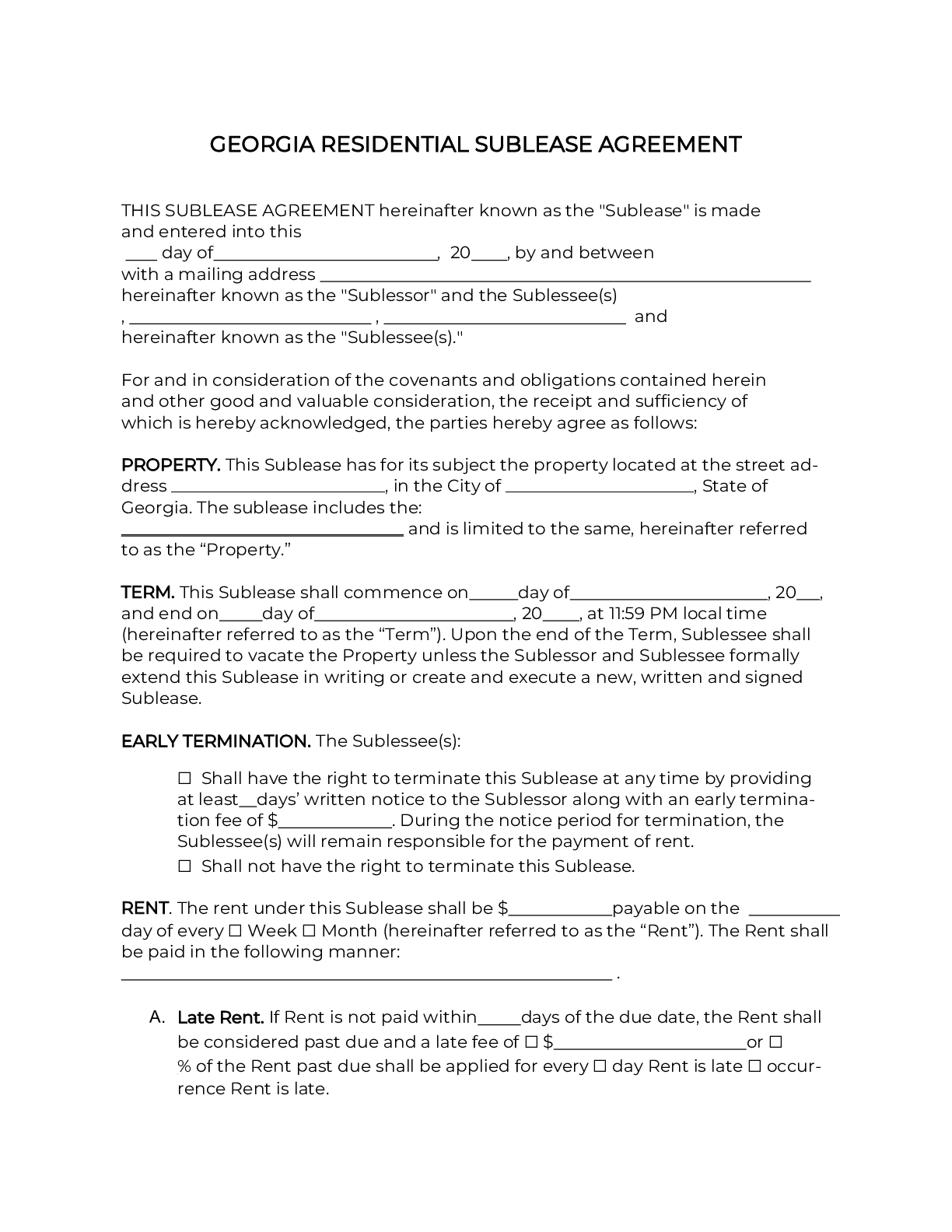 Free Georgia Sublease Agreement Template PDF Word