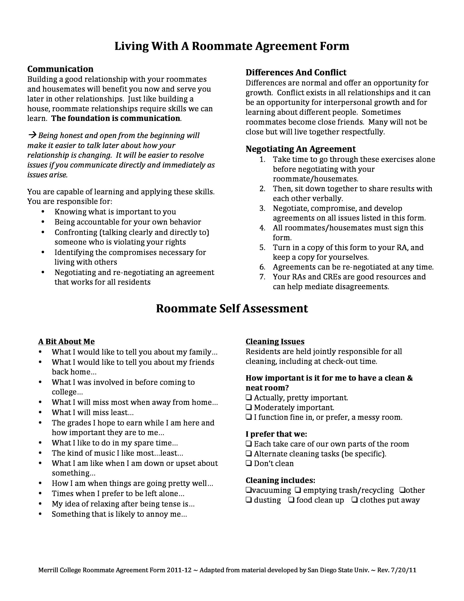 Roommate Agreement Template Fill Out Sign Online And Download PDF