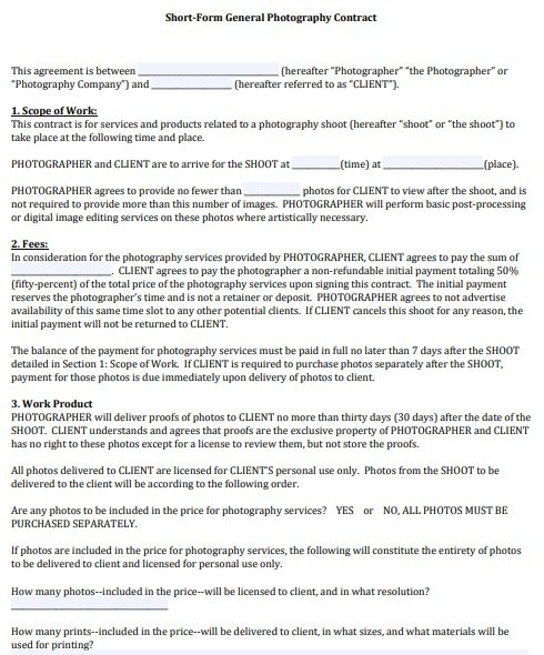 Are you a photographer looking for a simple, yet effective contract to use with your clients? Look no further! Our Printable Short-Form General Photography Contract is just what you need to protect yourself and your business.