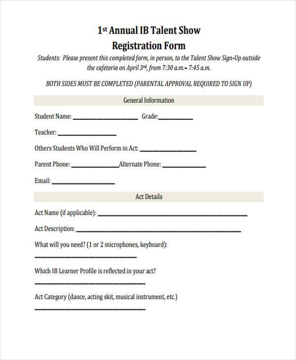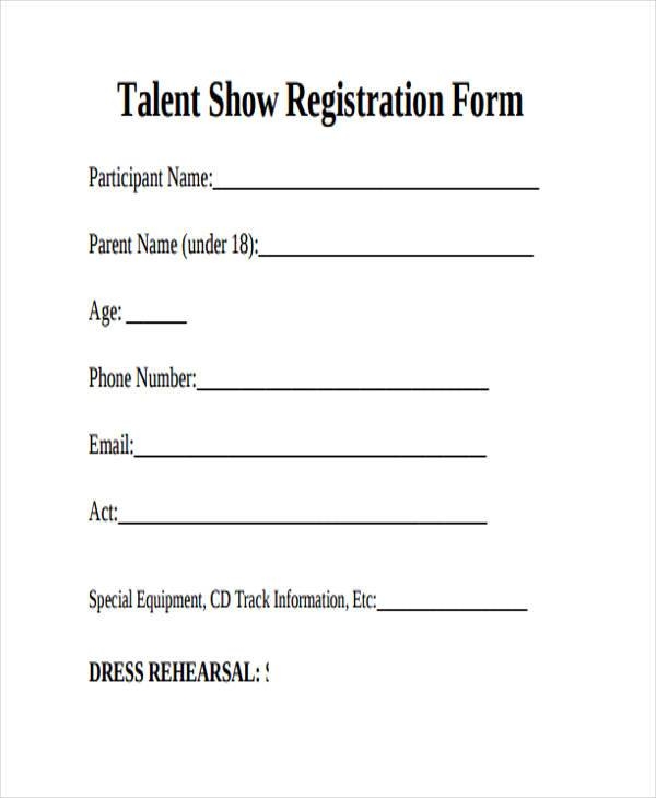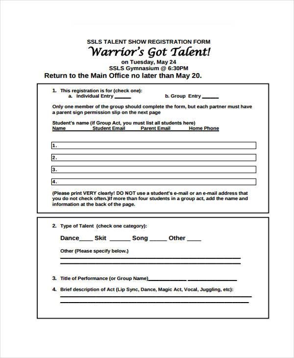 FREE 15 Talent Show Registration Form Samples PDF MS Word Google Docs