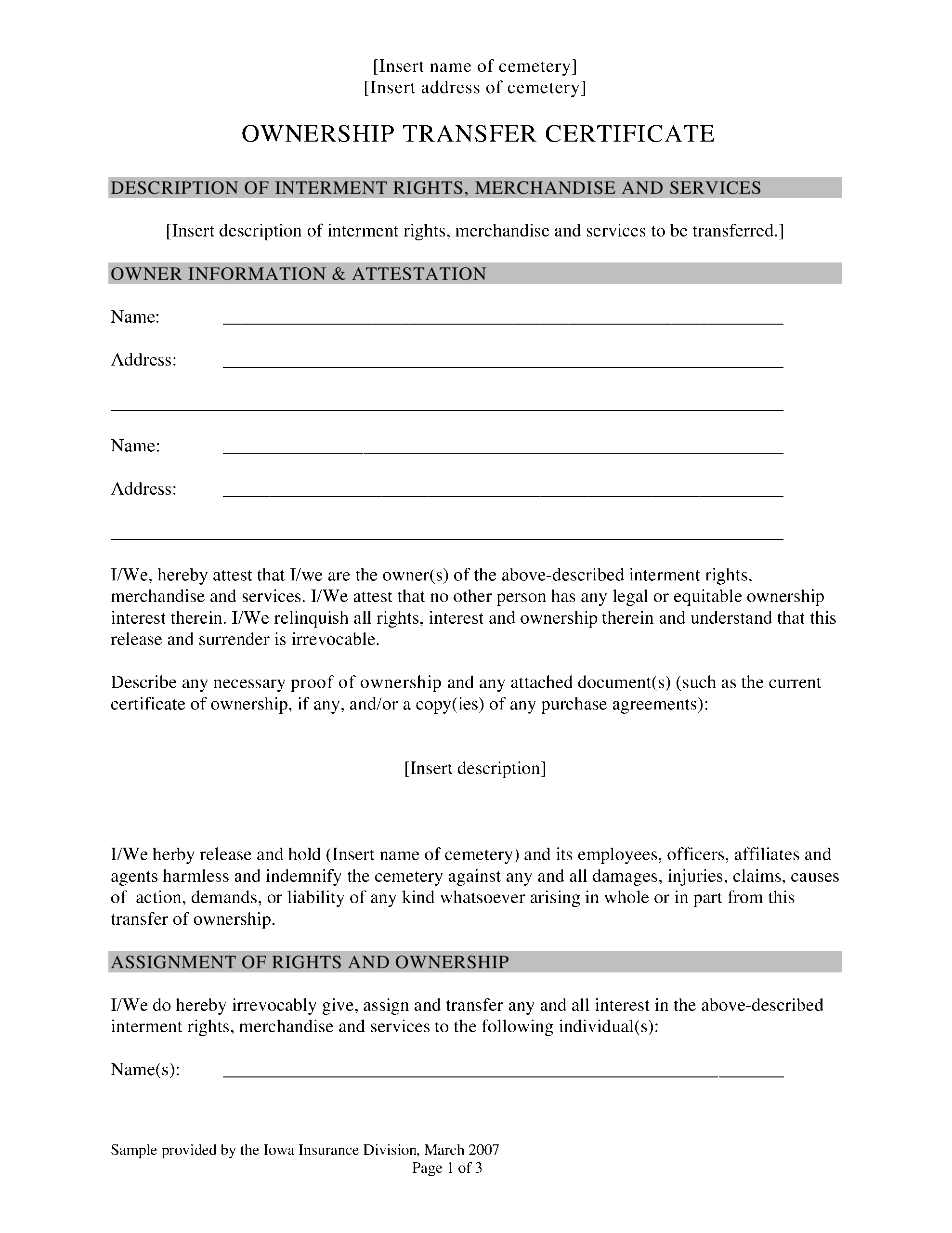 Printable Transfer Of Ownership Agreement Template Free Printable