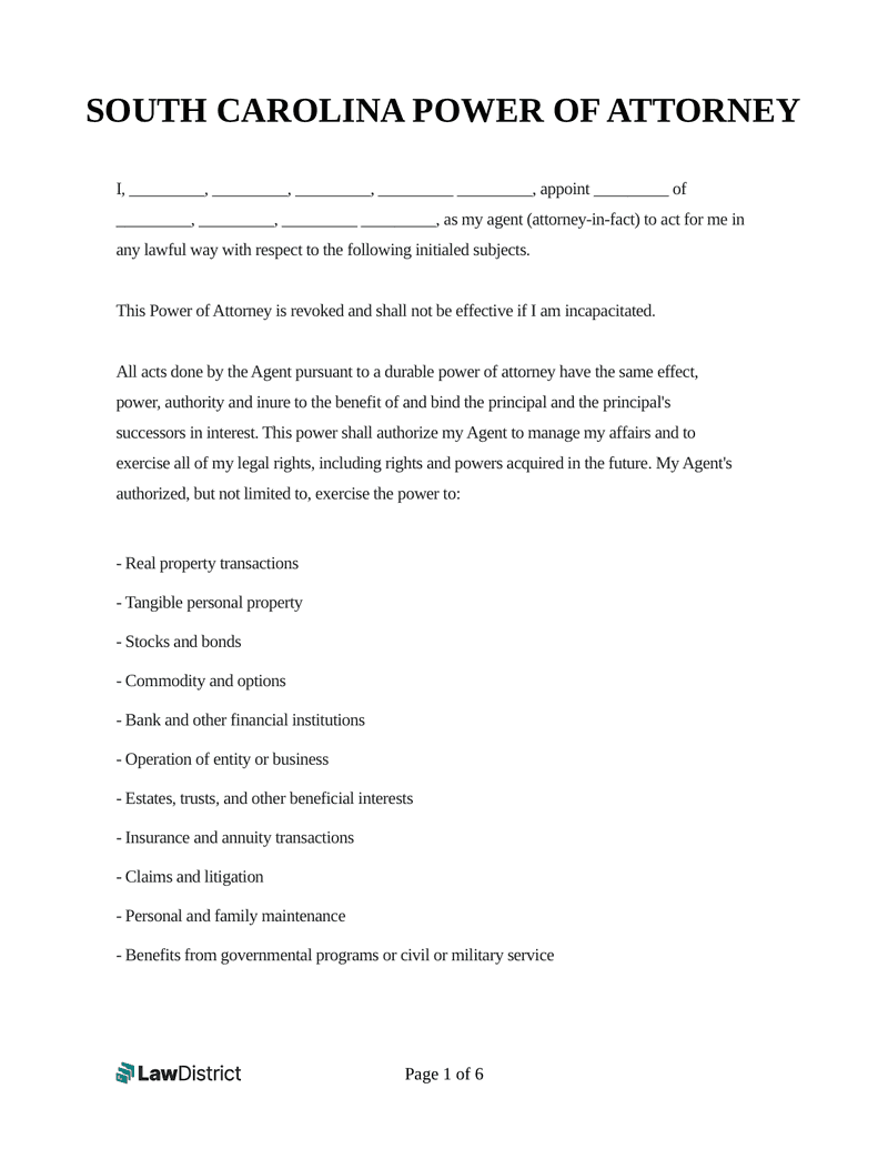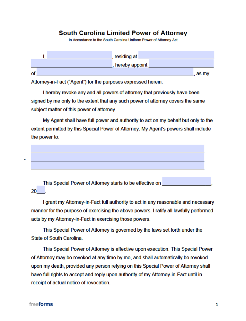 Free South Carolina Power Of Attorney Forms PDF Word Downloads